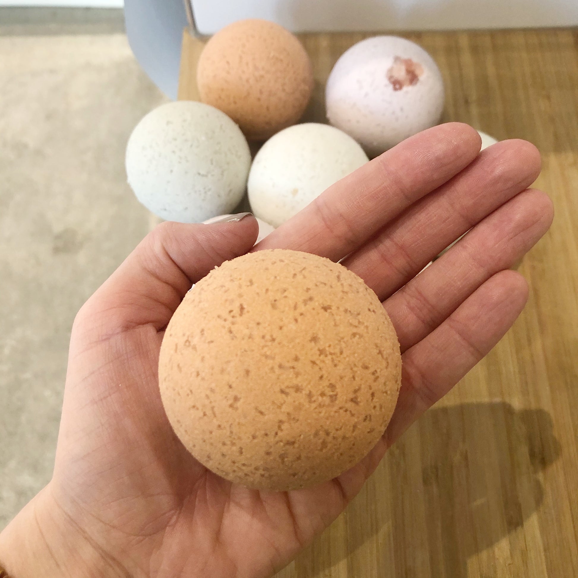We've changed up our bombs, and we know you're going to love them! They are now spherical, so you get more bang for your buck. Plus we have amped up the clay content, and added sweet almond oil, to make them super nourishing during the dry winter!